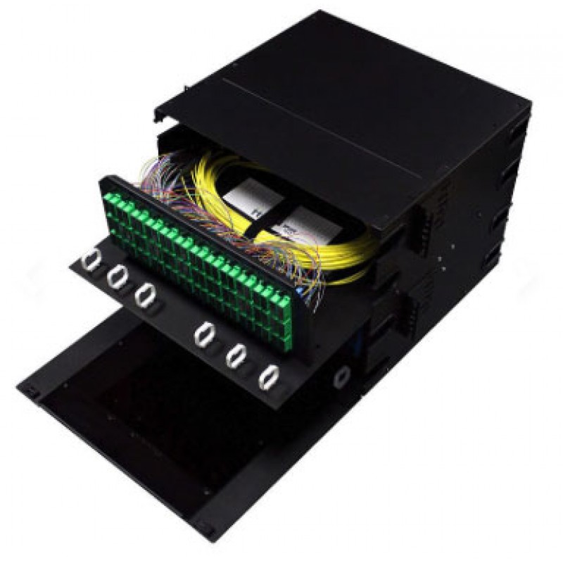 • Loaded panels include adapters, adapter plates, splice trays and pigtails
